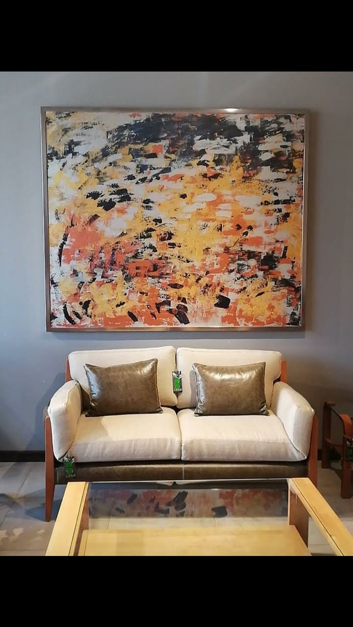 Cuadro abstracto metálico, de acrílicos metalizados, con líneas modernas y marco cromado. Ideal para espacios modernos, especialmente living-comedor. Para más información, dirigirse a Galería Artemarco, en Las Condes Design (Av. Las Condes 9765, Las Condes).